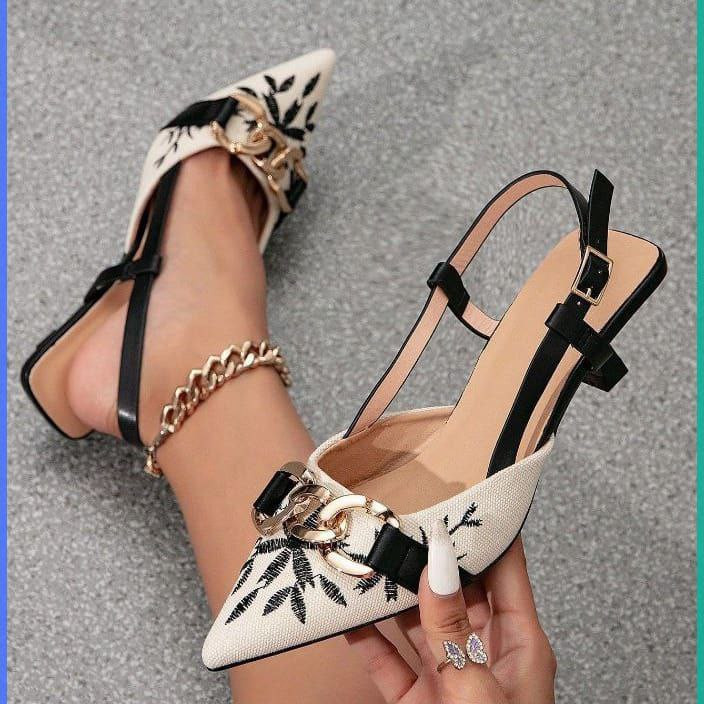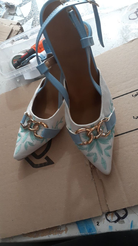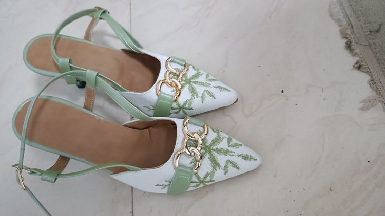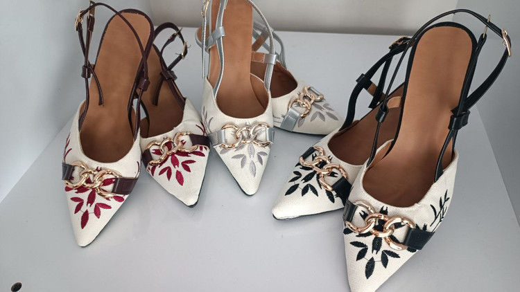 کفش مجلسی سوزن دوزی زمینه سفید پارچه طرح کنف
