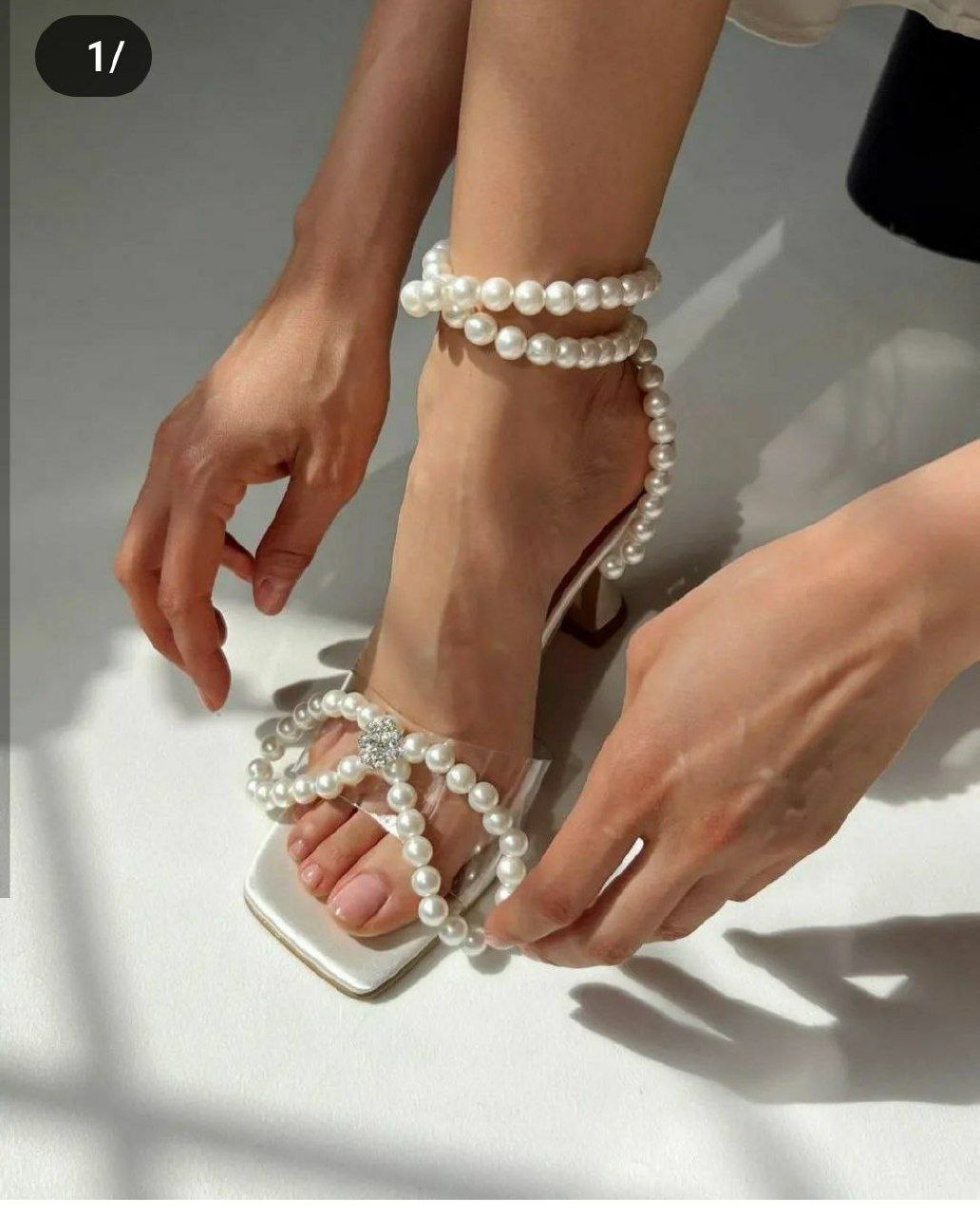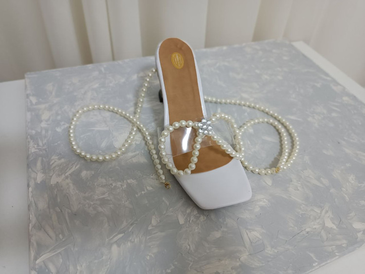 کفش مجلسی طلقی مرواریدی پاشنه شیشهای ۷ سانت جنس طلق خارجی وضخیم کد ۱۲۰